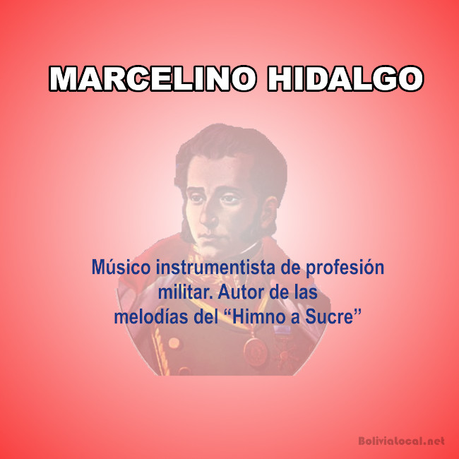 Marcelino Hidalgo fue un músico instrumentista de profesión militar. Autor de las melodías del “Himno a Sucre” y varias marchas militares.